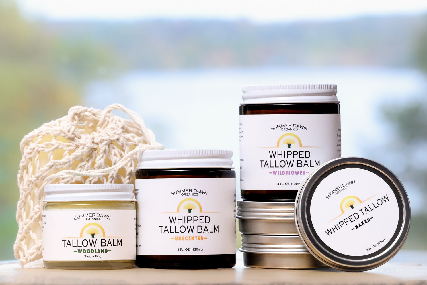 100% Grass-fed and finished suet tallow, a main ingredient with Summer Dawn Organics, is a pure, rendered fat that has been relied upon for millennia to nourish and heal the skin. Its unique composition closely mirrors the natural oils in human skin, making it incredibly compatible with our skin's needs.